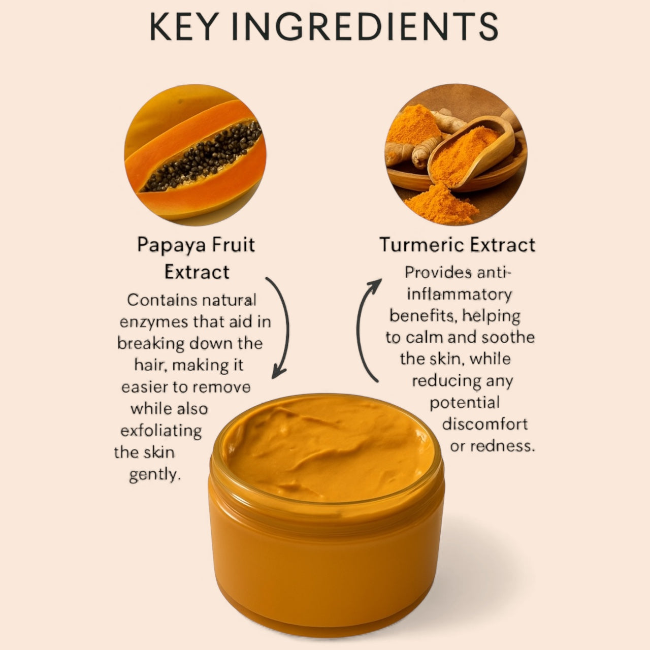Usage Tip: Apply the hair removal mask evenly using the brush and leave on for 5-10 minutes. Gently remove, rinse thoroughly, and finish with the lavender oil to soothe and hydrate your skin.